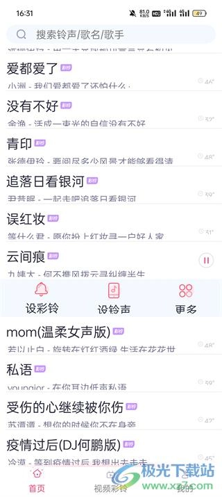 精选500万首高品质热门铃声,热播剧中的插曲铃声、网络爆红的搞笑铃声、人气歌手的单曲铃声。