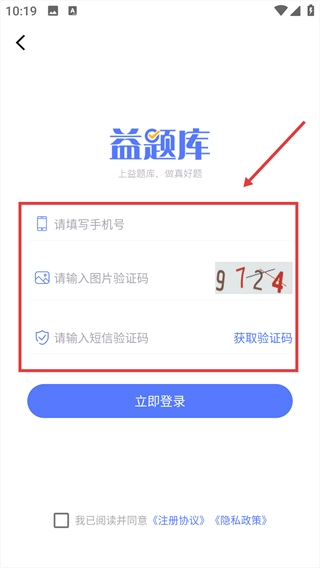 2、依次信息填写手机号、图片验证码和短信验证码。