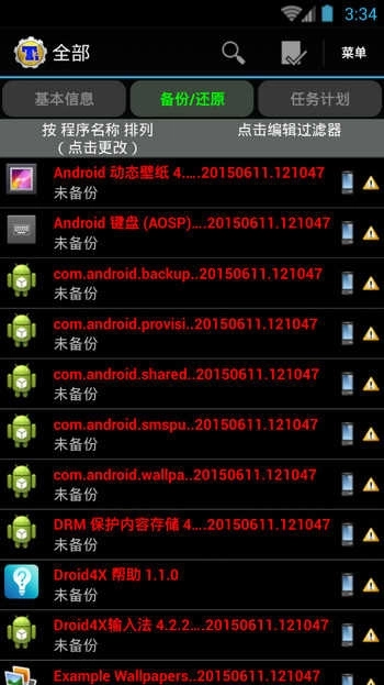 全面备份:钛备份能够备份整个系统或单个应用程序,包括应用数据和设置。