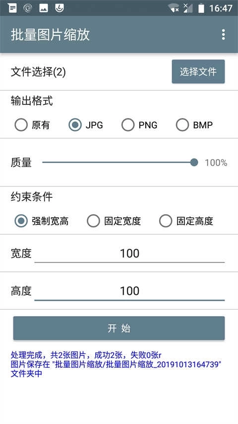 批量处理:确认设置后,点击开始按钮进行批量处理。