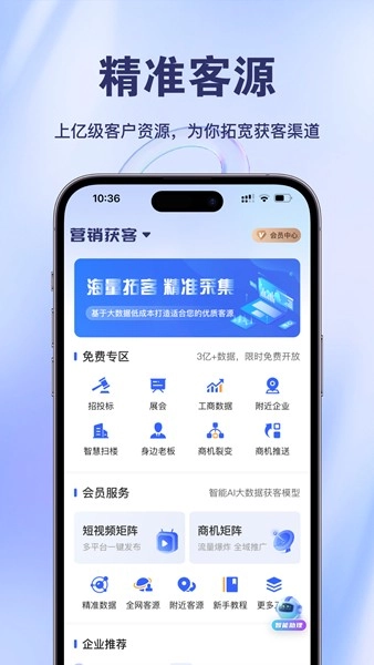 为用户匹配推荐的客户信息精准度较高,有助于获取有效客户资源。