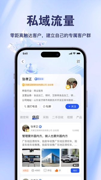 为企业用户配备了丰富的获客推广功能与采购资讯,足以支撑其各类业务场景的需求。