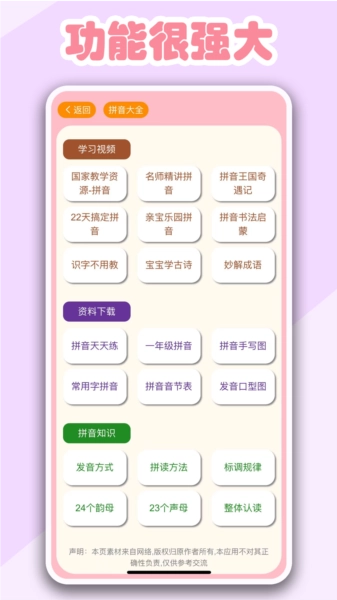 用户可以在线让孩子轻松的入门,更好的精通拼音。