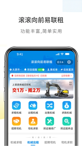 滚滚向前是一款十分实用的工程机械导购应用,涵盖了挖掘机、装载机、摊铺机、打桩机等多种产品。在这里,你能便捷地查询不同型号、品牌的详细参数,以及当前市场的真实报价,帮助你快速锁定所需的工程机械。此外,平台还配备专业的咨询服务,可及时为你答疑解惑,让工程机械的选购过程更加顺畅。