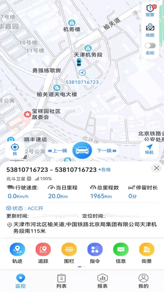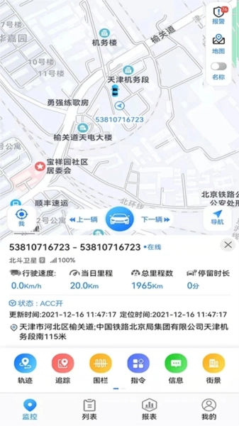 设备与系统成功建立连接后,启动应用程序,即可实时获取车辆的各项运行状态信息,此外还集成了行程轨迹记录、实时位置追踪、远程指令下发等多元化功能模块。