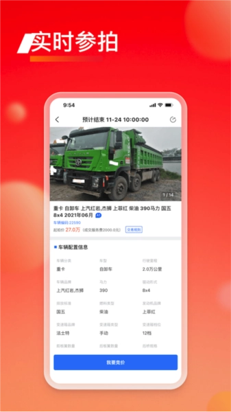 打开应用就能加入竞价拍卖,可以对车辆进行竞价;