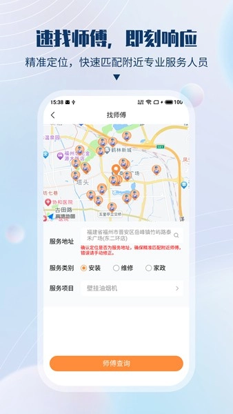 结合用户的服务需求与实时位置信息,能够为用户精准匹配周边的专业师傅。