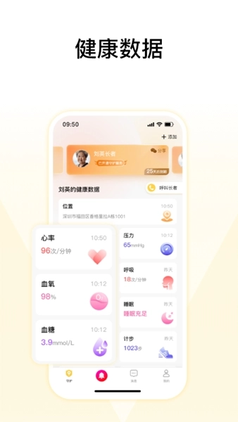 软件借助智能设备对长者的身体健康进行实时监护,能够随时查看最新的数据变动情况。