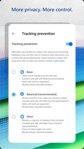 全方位安全防护:InPrivate模式守护隐私,跟踪预防功能默认启用,配备广告拦截器,为您带来安全无忧的浏览体验。