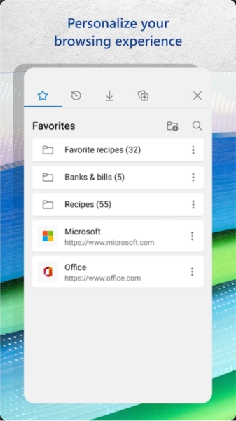 别再与高效浏览擦肩而过,马上体验Edge Beta版本。不管是工作资料的梳理、线上购物的便捷,还是安全隐私的守护,Edge Beta都是您的不二之选。畅享这款迅捷、安全又高效的浏览器所带来的出色体验,让您的手机浏览体验更进一竿!此刻就加入我们,开启您的高效网络旅程,让Edge Beta成为您日常生活中必不可少的贴心助手。让我们一同期待Edge Beta浏览器的不断优化,带来更多惊喜。无论何时何地,只要您有需求,Edge Beta都会一直陪伴在您身边,为您打造高品质的浏览体验。
