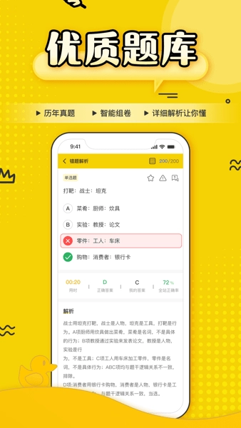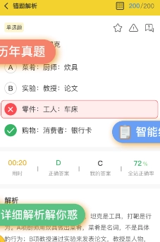 该应用具备强大的全面刷题功能,整合了海量的历年笔试与面试真题资源。学员可通过自由刷题来巩固知识。其智能组卷功能能根据考情定制专属试卷,实现针对性自我检测;同时,配合详尽的解析,帮助学员透彻理解知识点和解题方法。