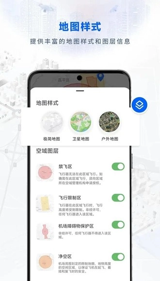 全国空域信息实时更新,适飞空域、机场和禁飞区清晰呈现,助您轻松避开风险,确保飞行既安全又合法。
