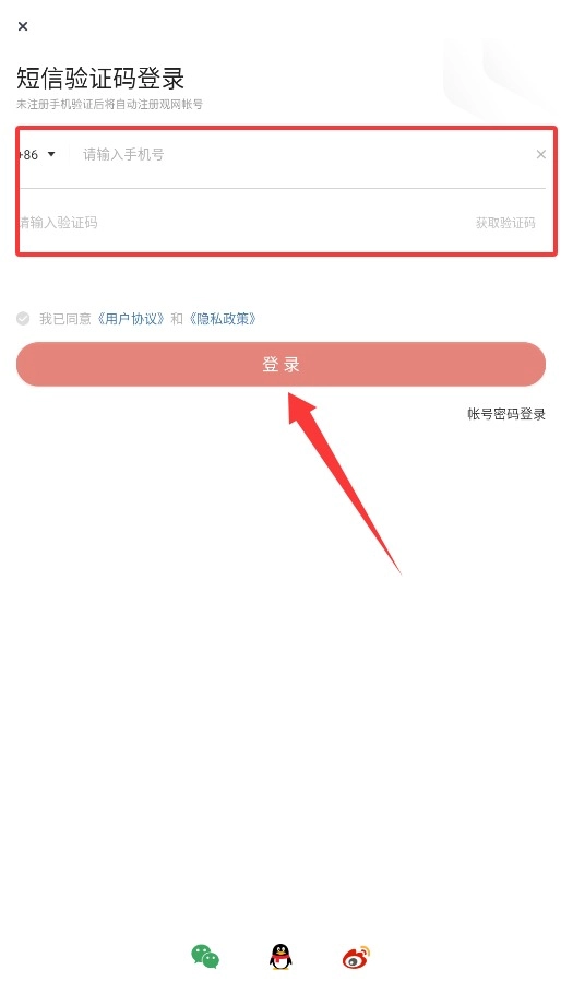 支持通过手机号验证码快速登录,也能选择第三方社交账号进行授权绑定来完成身份验证。
