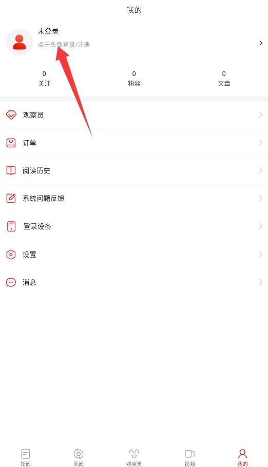 进入个人中心页面后,点击界面左上角显示“未登录”的区域,系统会自动跳转至账号认证页面,您可在此完成相关操作。