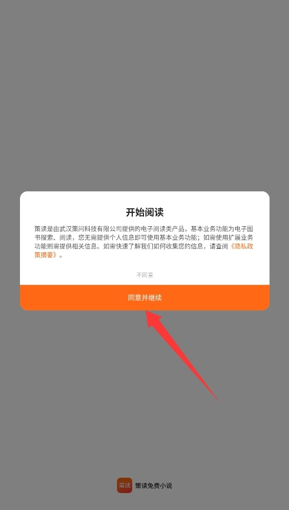 当你第一次打开策读应用时,系统会呈现隐私政策的概要内容。请你认真阅读这些信息,之后点击“同意并继续”按钮,这样就能进入应用开始使用了。