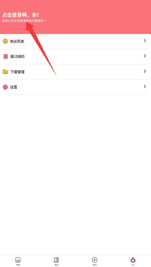 第一次用微漫画的时候,点进个人中心页面,找到左上角那个很明显的登录按钮,点它就能进到账号验证的界面了。