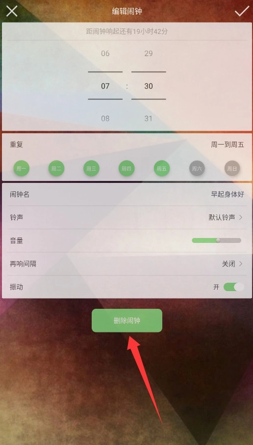 在闹钟设置页面的最下方找到“删除闹钟”按钮,点击后系统会弹出确认对话框,再次点击确认就能删除该闹钟。