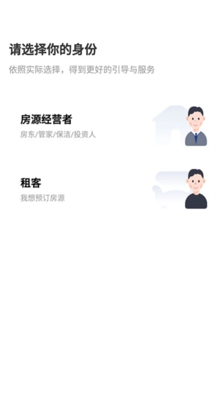 注册/登录App后,选择身份为【房源经营者】。