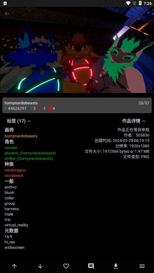 浏览手机端的福瑞e926/e621平台,查看各类帖子与集合内容,阅读评论并和其他用户进行互动交流。