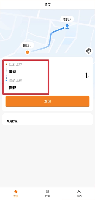 1. 开启滇约出行网约车应用,于首页位置输入起始城市与目的城市。