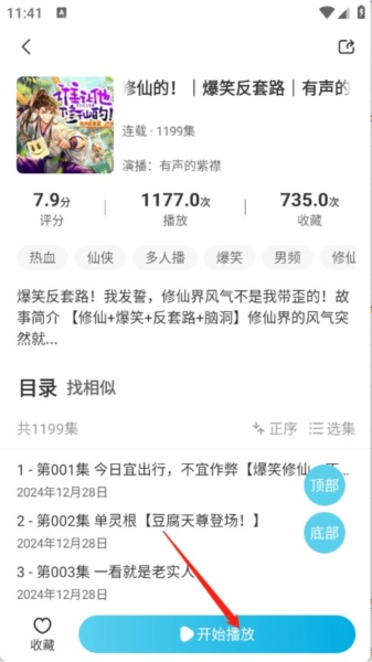 当确定了心仪的小说后,进入其详情界面,找到并点击那个用于启动播放功能的按钮。