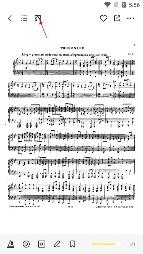 进入谱子界面后,点击曲谱左上角箭头指向的小图标。