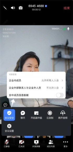 为确保会议顺利推进,可针对参会人员设置相应权限。