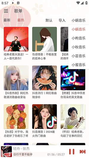 点击歌单板块,在导入按钮的旁边,找到默认显示的“小蜗音乐”选项并点击,即可完成音源切换。