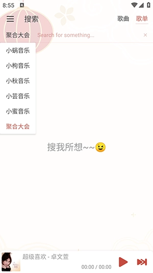 输入想要搜索的歌单或者歌手或者歌曲名字。