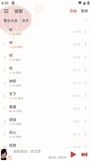 点击对应的歌曲就可以直接播放了。