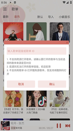 点击导入,按上面的要求复制歌单链接即可。