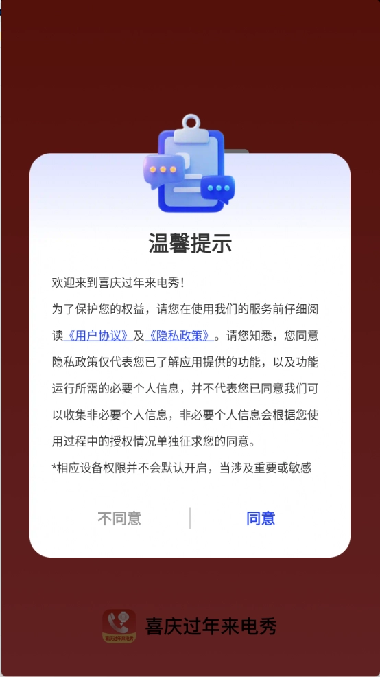 首先在本站的喜庆过年来电秀页面,仔细阅读并同意隐私政策与用户协议后,即可进入首页。