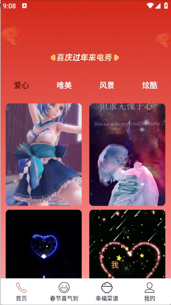 来电秀的世界精彩纷呈,酷炫、唯美、暖心等风格各异的素材汇聚一堂,总有一款能打动你。