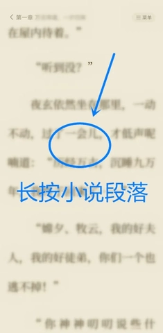 打开全免小说书籍阅读页面,长按书籍段落。