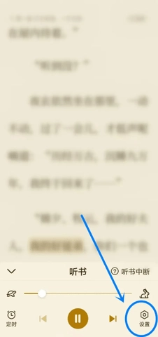 进入听书页面,点击“设置”图标。