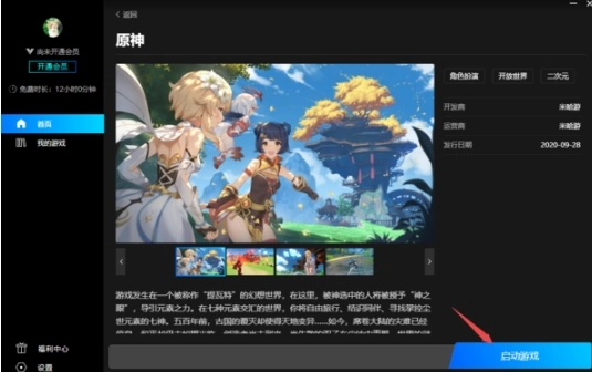 进入原神游戏界面后,点击界面右下角的【启动游戏】按钮