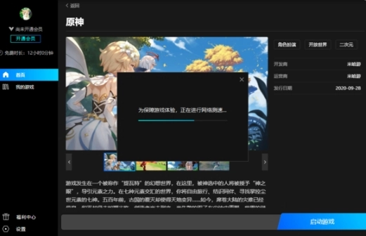 软件会先测试电脑的网速,等测试完成后,就会启动原神游戏,这样就能进入到原神的游戏画面里了。