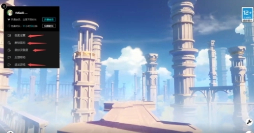 在游戏界面的左上角,点击【小齿轮】图标,能够对游戏画面、鼠标解锁状态以及鼠标灵敏度进行设置,此外也可以选择退出游戏。