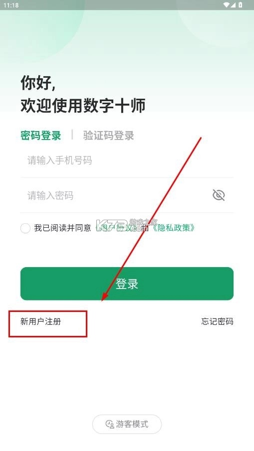 点击如下图位置的新用户注册按钮;