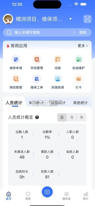 进入首页后,您能够使用更多应用服务,其中涵盖常用应用与人员统计功能。