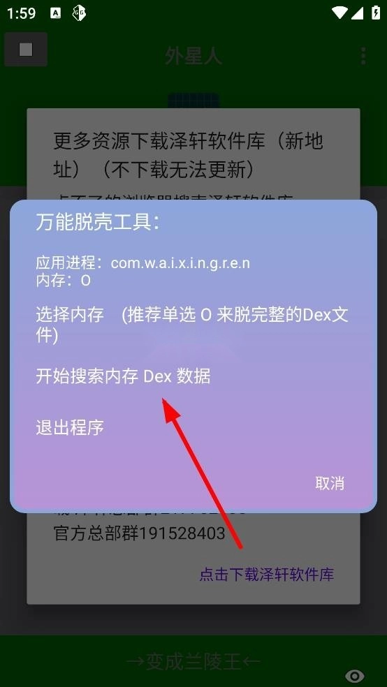 点击开始搜索内存dex数据