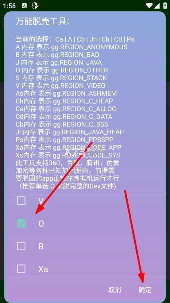选择内存,单选o来脱dex文件