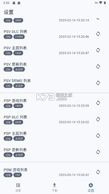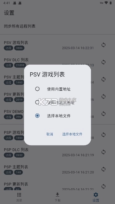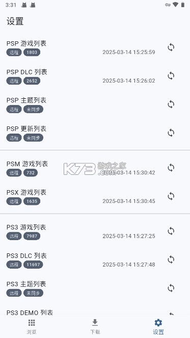 获取指定的k73FNPS文件并完成安装,启动程序后找到界面右下角的设置入口,选择顶部的“同步所有远程列表”选项,待系统完成数据抓取,即可在下方对应设备分类区域查看各平台远程游戏的数量统计。