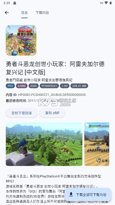 有位Vita3K模拟器的开发者IllusionMan1212编写了一款安卓应用,能浏览NPS资源。nini22P对这个应用进行了编译处理,还配上了中文界面。不过它的搜索功能存在一些问题,最好输入比较完整的名称才能找到想要的内容。通过这个工具,你可以获取游戏、DLC、主题等各类pkg格式的资源,同时复制对应的zrif密钥,之后就能在Vita3K上安装这些pkg文件了。