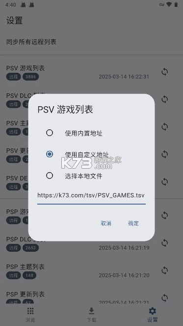 要是你对当前游戏资源列表里的游戏不太满意,还能选用其他tsv格式的游戏列表。操作起来很简单,只需点击对应平台的游戏列表,然后选择复制网址或者从本地导入tsv文件就行。