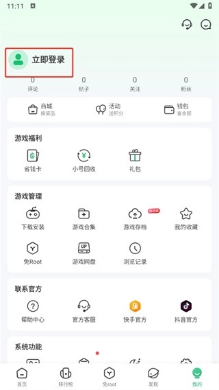 进入个人页面后,会发现有不少游戏相关的功能可供体验。此时,我们需要操作的是点击位于页面左上方的“立即登录”按钮。