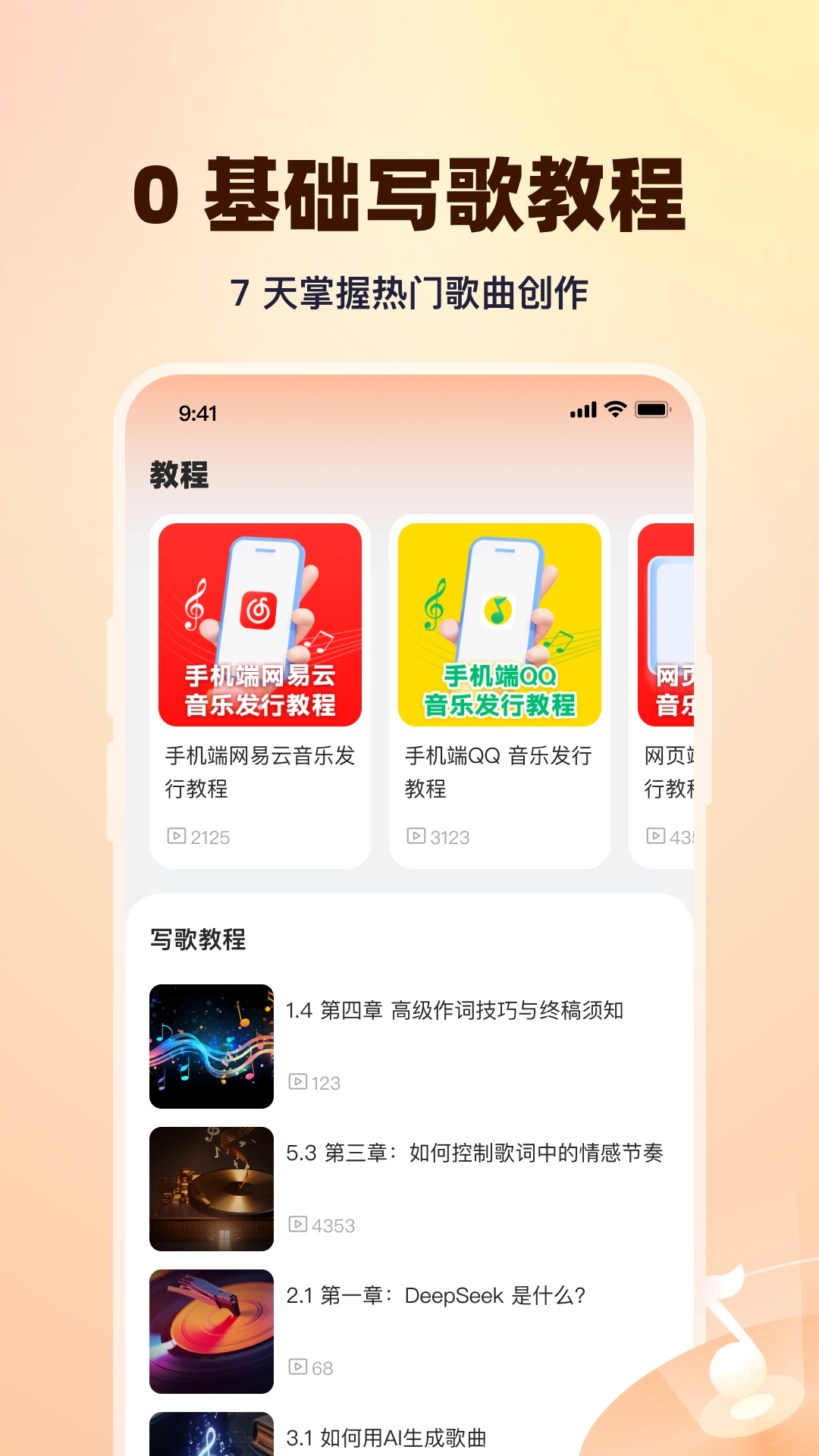 通过教程页面,你能知晓零经验创作歌曲的便捷之处,也能接触到各类不同的歌曲创作指导内容。