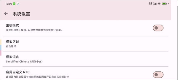 设备的两种运行模式可在此处进行模拟设置,游戏过程中的语言与地区参数也需通过该界面调整,且需先结束当前游戏进程才能执行更改操作。