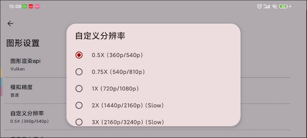 要是手机配置不太好,像搭载骁龙6系处理器的机型,装好驱动后其实也能勉强模拟Switch。这种情况下把yuzu的模拟分辨率调整为0.5倍(360×540),用这样最低的分辨率,应该总能运行起来了吧。