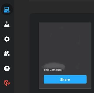 打开Parsec应用,在主界面左侧找到“电脑”选项并点击,此时能看到自己的电脑设备,接着点击“share”按钮。